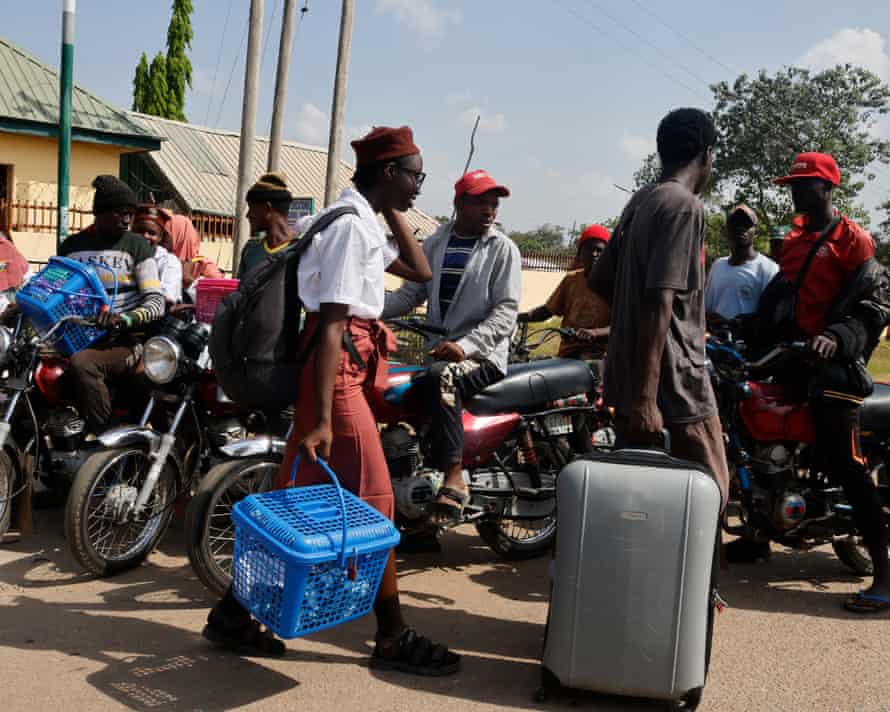Parents pick up their children from a girls’ college in Abuja, Nigeria after the federal government ordered the temporary closure of 41 schools. Photograph: Afolabi Sotunde/EPA