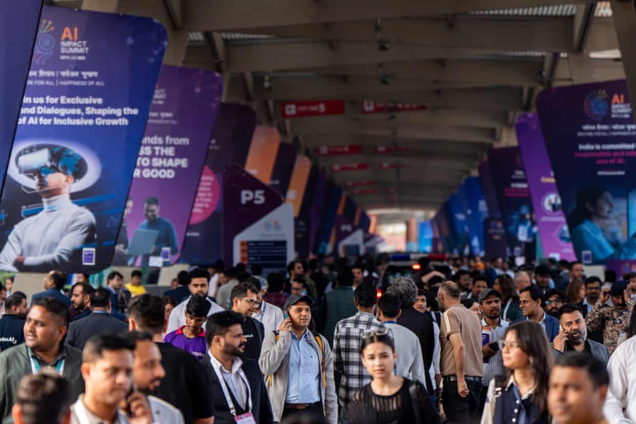 Visitors at the AI Impact summit in Delhi. Photograph: Anadolu/Getty